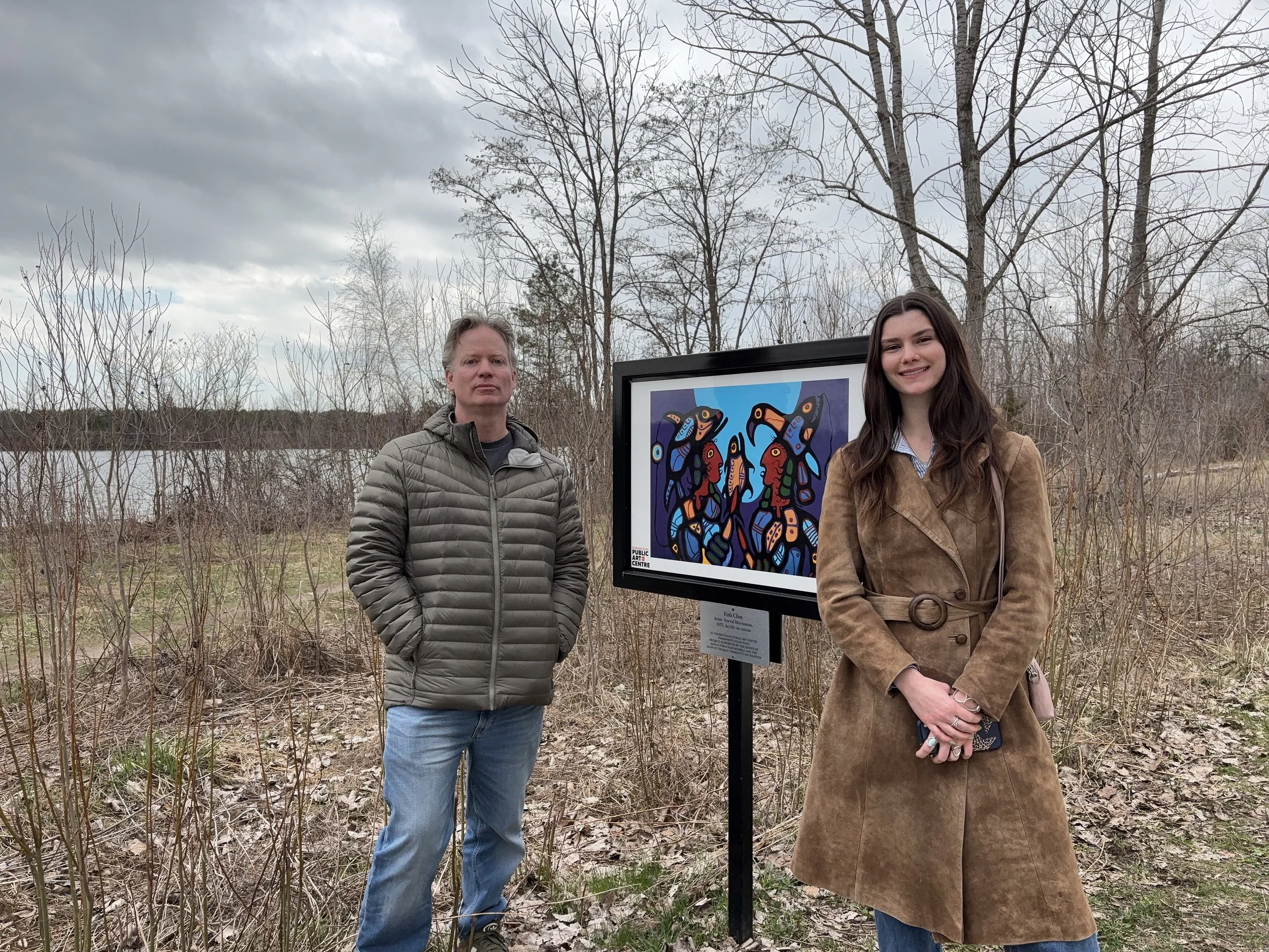 Andrew Gunn and Madison Comfort of Andrew Gunn Consulting and young & free press highlight one of the past installations in the ‘Art, Trees & Trails’ series — ‘Fish Clan’ by celebrated artist Norval Morrisseau, which can be found along the walking trail near Lake Margaret in St. Thomas. Discover all the locations at http://www.stepac.ca/art--trees-and-trails